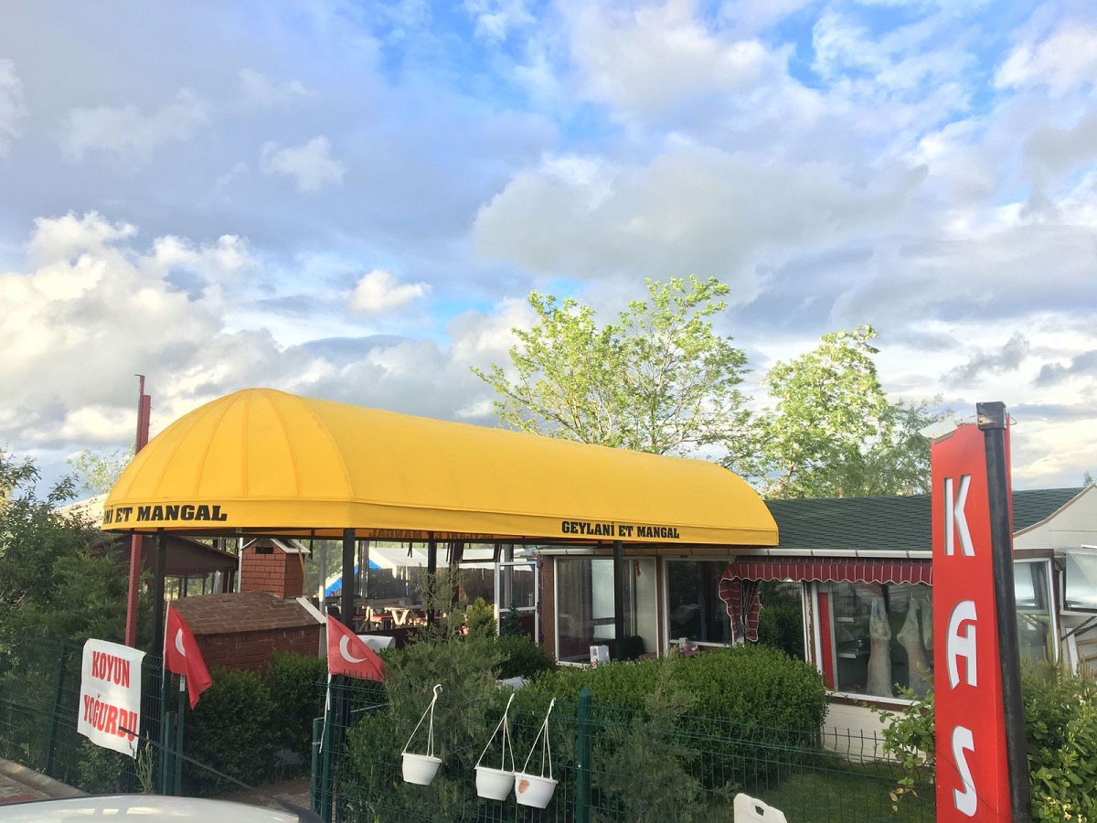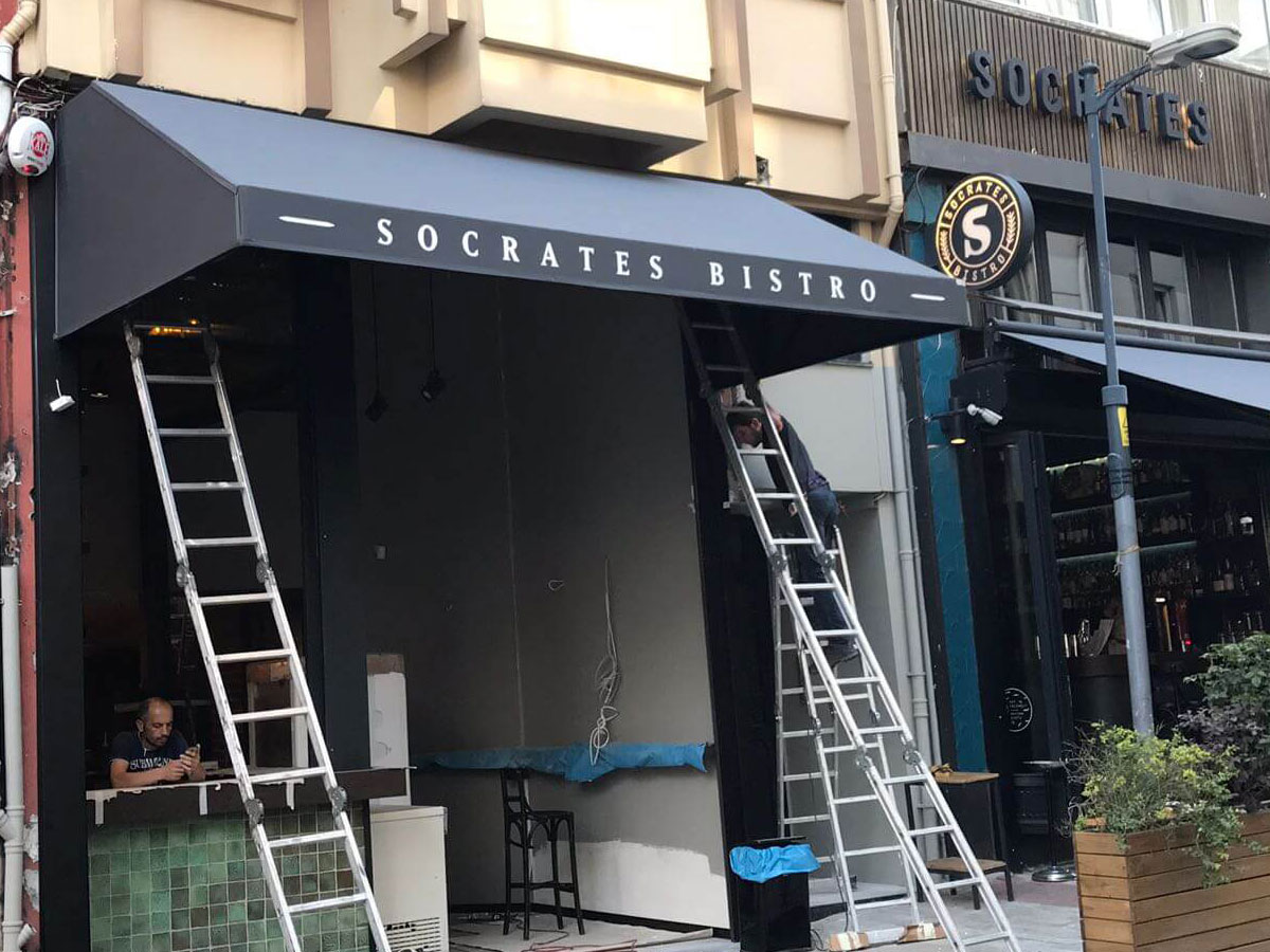 Marka renkleriyle üretilen sabit tenteler uzaktan görülebilir ve işletmeyi akılda kalıcı kılar. Özellikle cadde üzerindeki işletmeler için görsel tanınırlık açısından büyük değer taşır. Geceleri ışıklandırma eklenerek etki daha da artırılabilir.